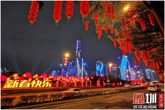 四、懸掛喜慶小燈籠。在深南大道、北環大道、濱海大道等多條路段多個節點行道樹上懸掛4萬余串節日燈籠,如碩果累累。充滿了迎接春天的氣息。