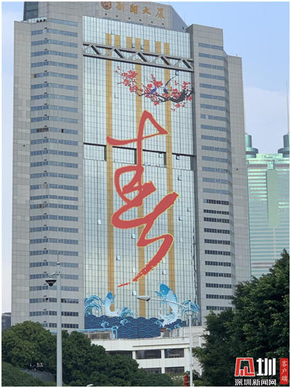 新聞大廈外立面設置巨幅迎春壁畫